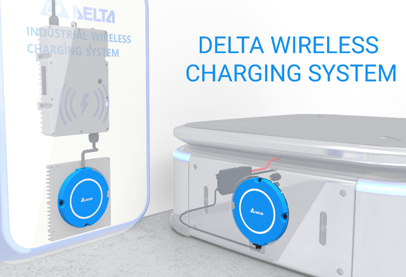 The MOOVair 1 kW Wireless Charging System from Delta Electronics offers an innovative and completely contactless solution for automatic charging of Automated Guided Vehicles (AGVs) and Autonomous Mobile Robots (AMRs). The system eliminates the need for manual connectors and reduces wear and tear on connections, resulting in increased reliability and reduced maintenance needs.