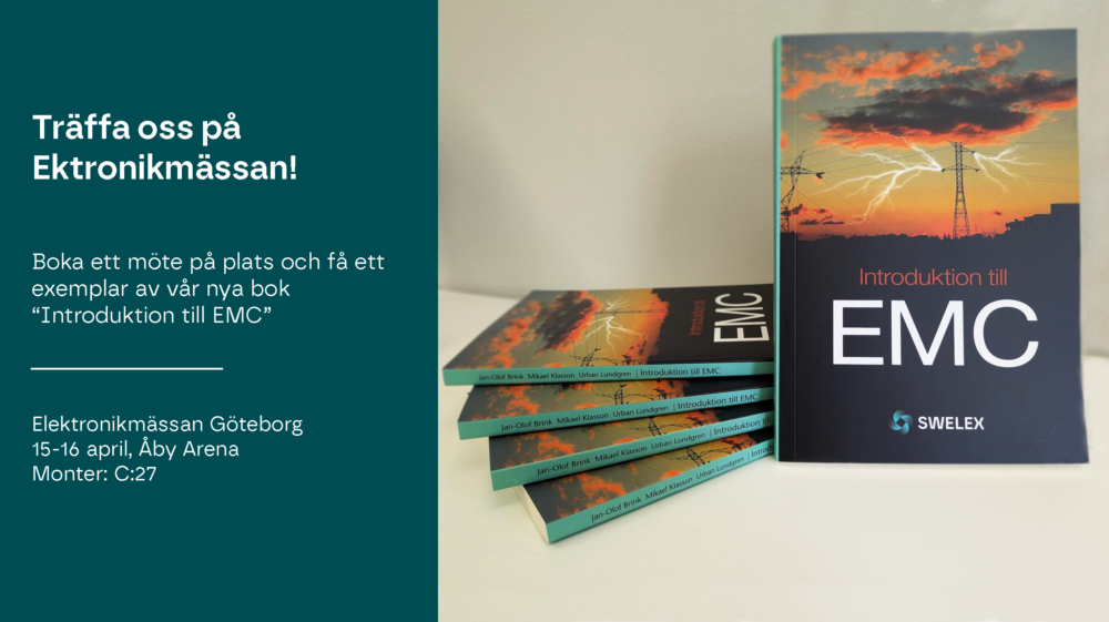 Vi på Swelex är glada att kunna presentera vår nya bok Introduktion till EMC, framtagen tillsammans med några av Sveriges mest erfarna EMC-experter. Boken ger en pedagogisk och praktisk introduktion till elektromagnetisk kompatibilitet, perfekt för dig som vill lära dig mer om ämnet – oavsett tidigare erfarenhet.